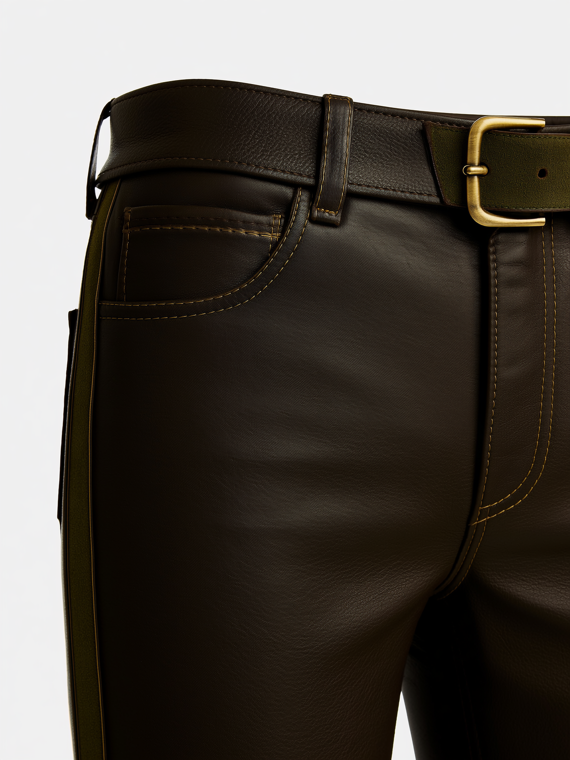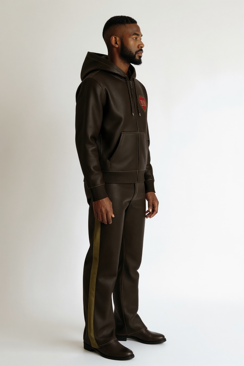 Rich cocoa leather, gold hardware, and warm-tone stitching bring together street reality and luxury restraint.