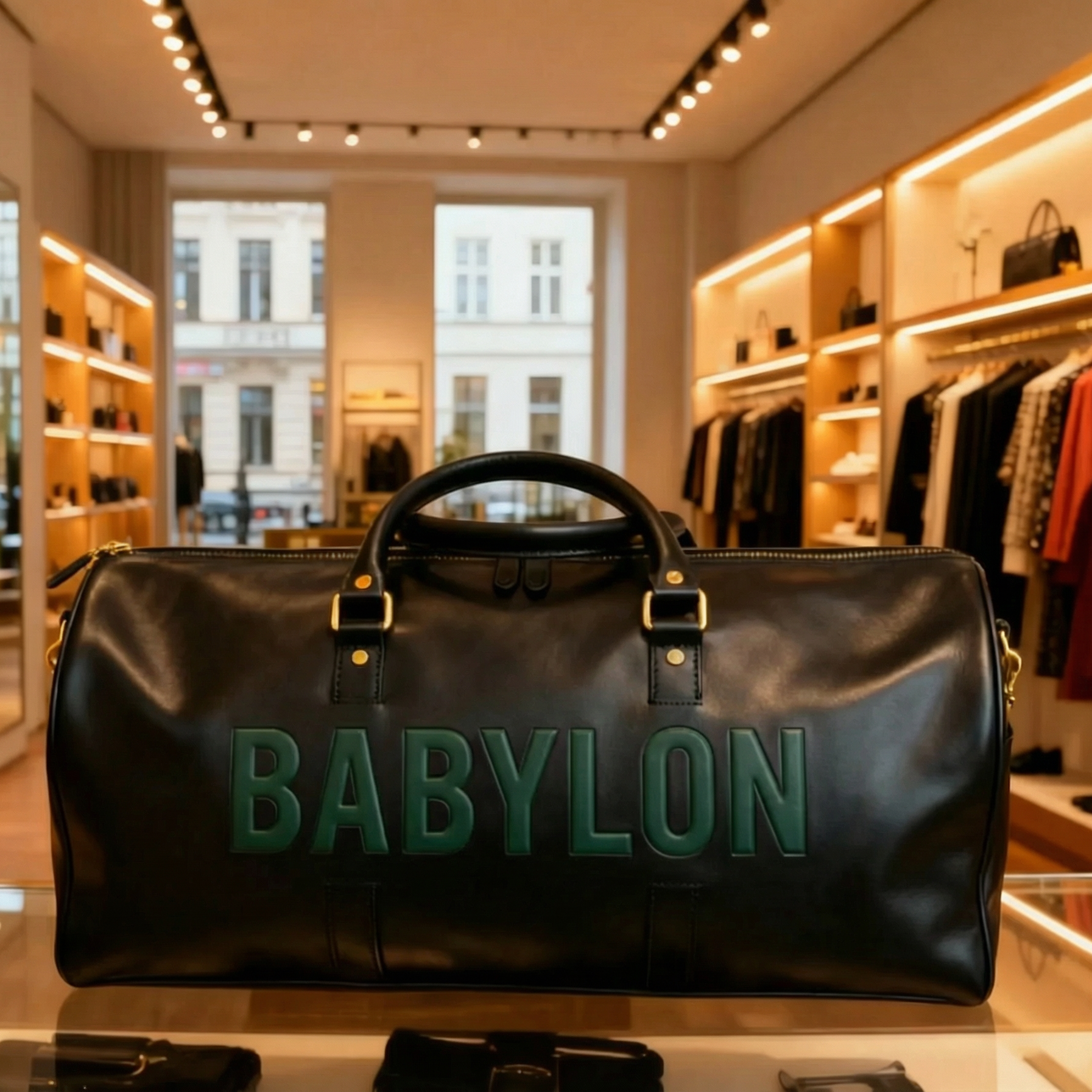 Crafted from premium black full-grain leather with a rich natural sheen, the Babylon Weekender blends quiet luxury with bold personalization. The handles, reinforced with brass hardware, sit firm and sculptural. The silhouette is timeless — clean structure, no wasted lines, made to walk into a room before you do.