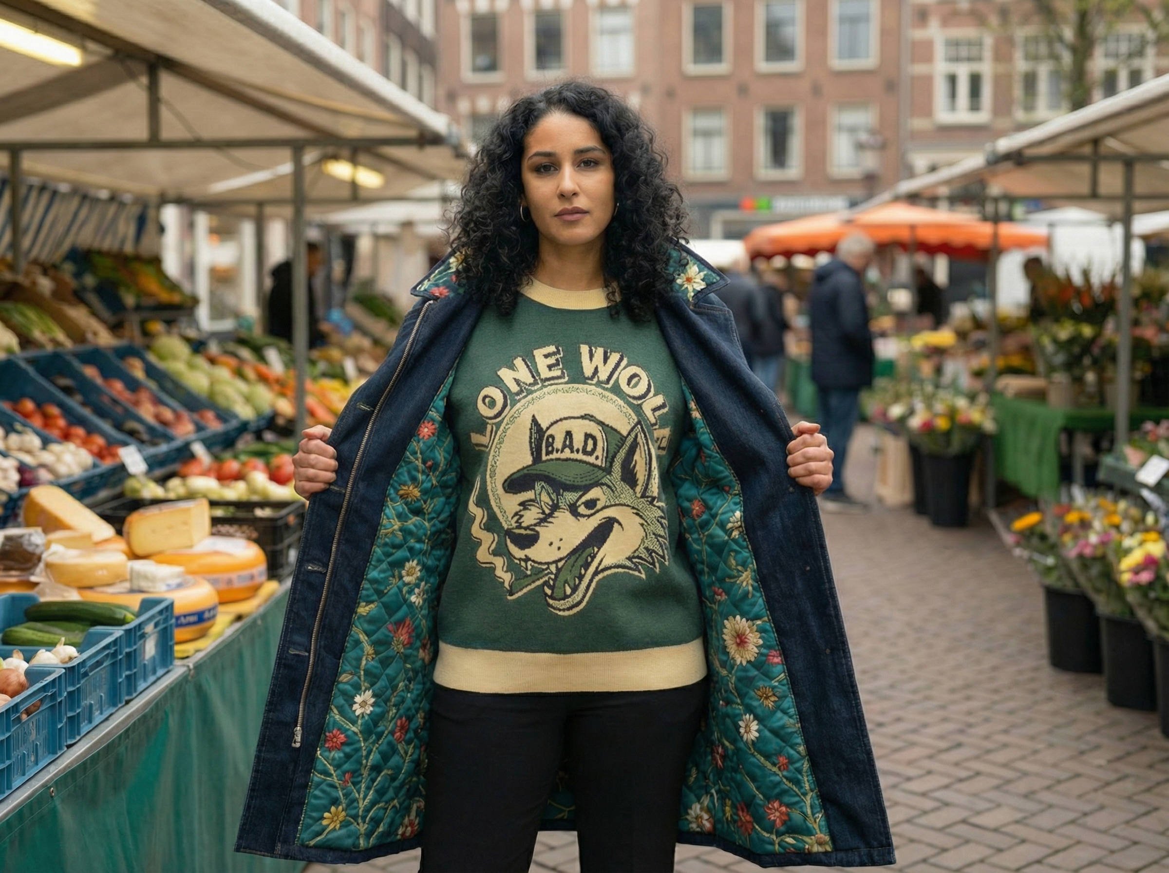 This coat moves from street markets to runways, from late-night sets to cold-morning missions — carrying the same confidence in every space. Luxury armor with a pulse. A conversation starter even before it’s unzipped.
