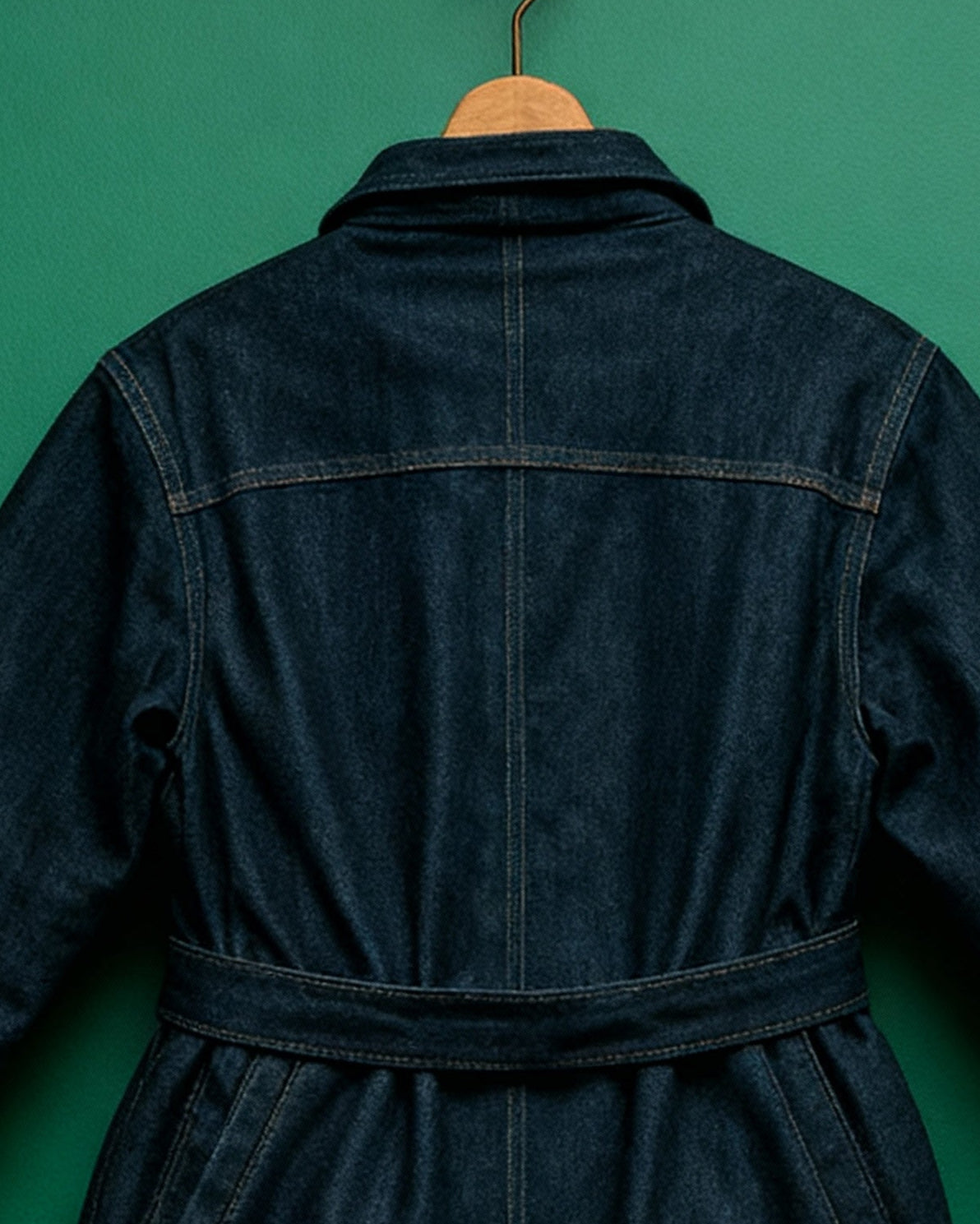 Every detail is considered. A hidden front zipper tucked behind a smooth protective flap. Deep welt pockets for function and form. Reinforced cuffs. Heavy-duty gold topstitching that nods to classic denim craftsmanship while elevating it into modern outerwear.